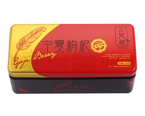 野生黑枸杞鐵盒包裝,寧夏枸杞子鐵盒加工,采用單面1專色+四色印刷工藝制作,外過水性亮光油,內(nèi)過透明油,鐵盒整體為蓋、身、底印刷處理。此款鐵盒為200*90*83mm的規(guī)格尺寸,可包裝300g的枸杞,可選擇大容量的包裝需求。